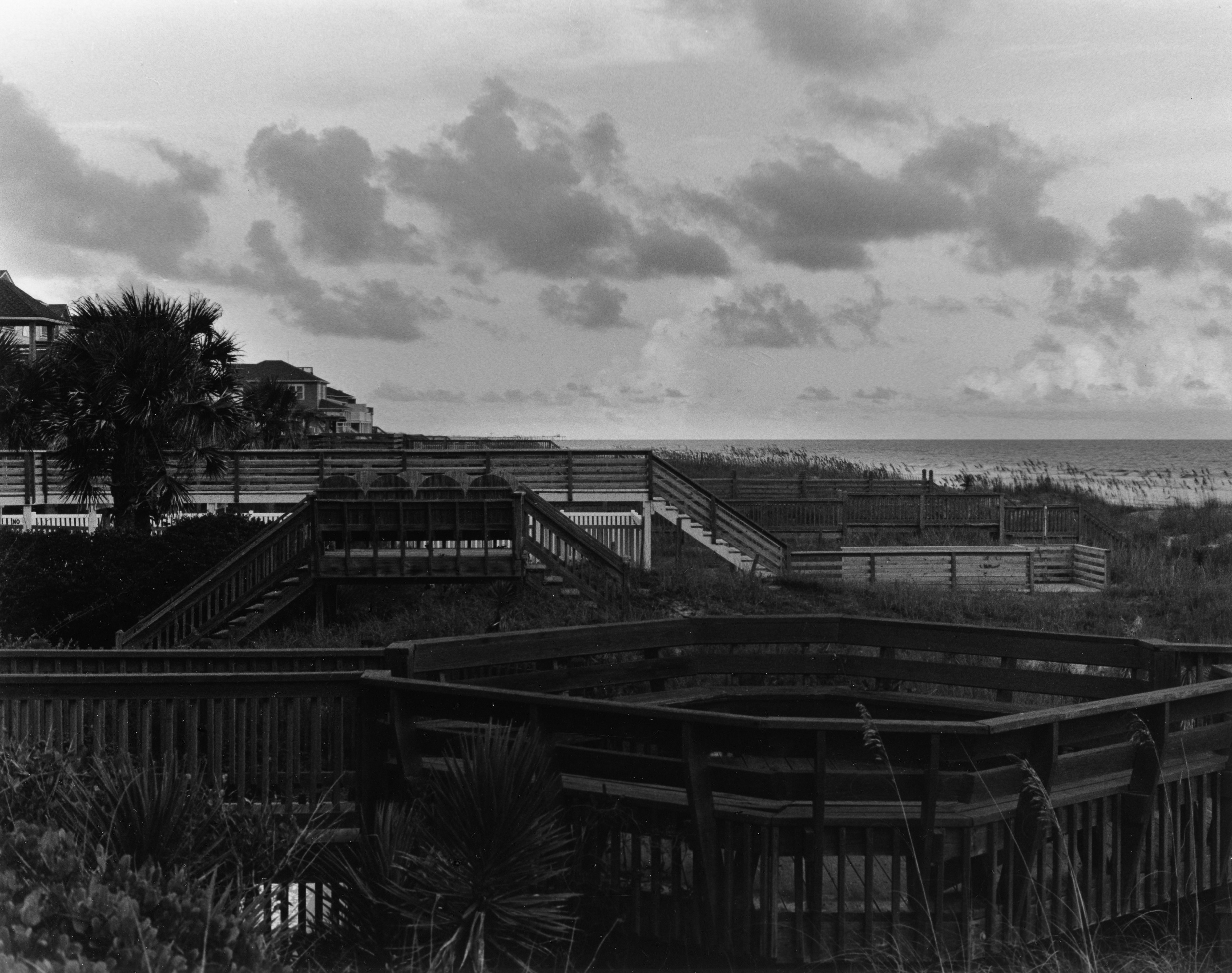 12607 scanEmerald Isle, North Carolina. The photo was taken in September of 2018 with a Minolta X-700 35 mm SLR equipped with a 50 mm f/1.7 Minolta MD lens on Ilford FP4+ film. The negative was enlarged optically with a Beseler 23CIIXL enlarger and a 50 mm f/2.8 Schneider Componon-S lens on Ilford Multigrade FB Classic Double Weight Fiber Base silver gelatin photo paper. Processing was done archivally using Kodak chemistry, with a final toning with Kodak Rapid Selenium Toner, treated with hypo clearing agent, and washed in an archival washer.