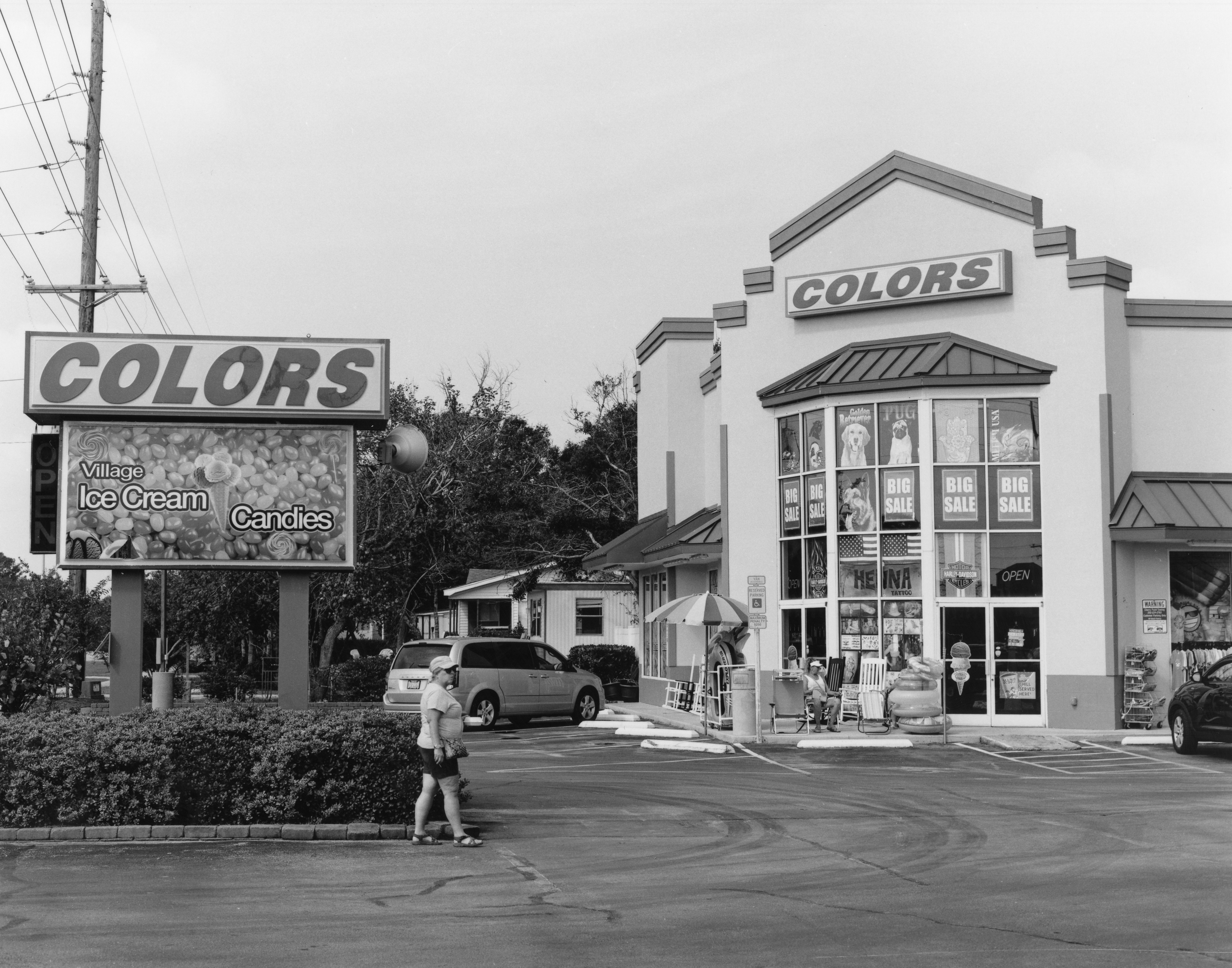 15713 scanTypical beachwear tourist shop - can be seen from Key West to Atlantic City (and beyond!). Emerald Isle, North Carolina. The photo was taken in September of 2019 with a Pentax 67 medium format SLR equipped with a 105 mm f/2.4 SMC Pentax 67 lens on Ilford FP4+ film. The negative was enlarged optically with a Beseler 23CIIXL enlarger and a 100 mm f/5.6 Schneider Componon-S lens on Ilford Multigrade FB Classic Double Weight Fiber Base silver gelatin photo paper. Processing was done archivally using Kodak chemistry, with a final toning with Kodak Rapid Selenium Toner, treated with hypo clearing agent, and washed in an archival washer.
