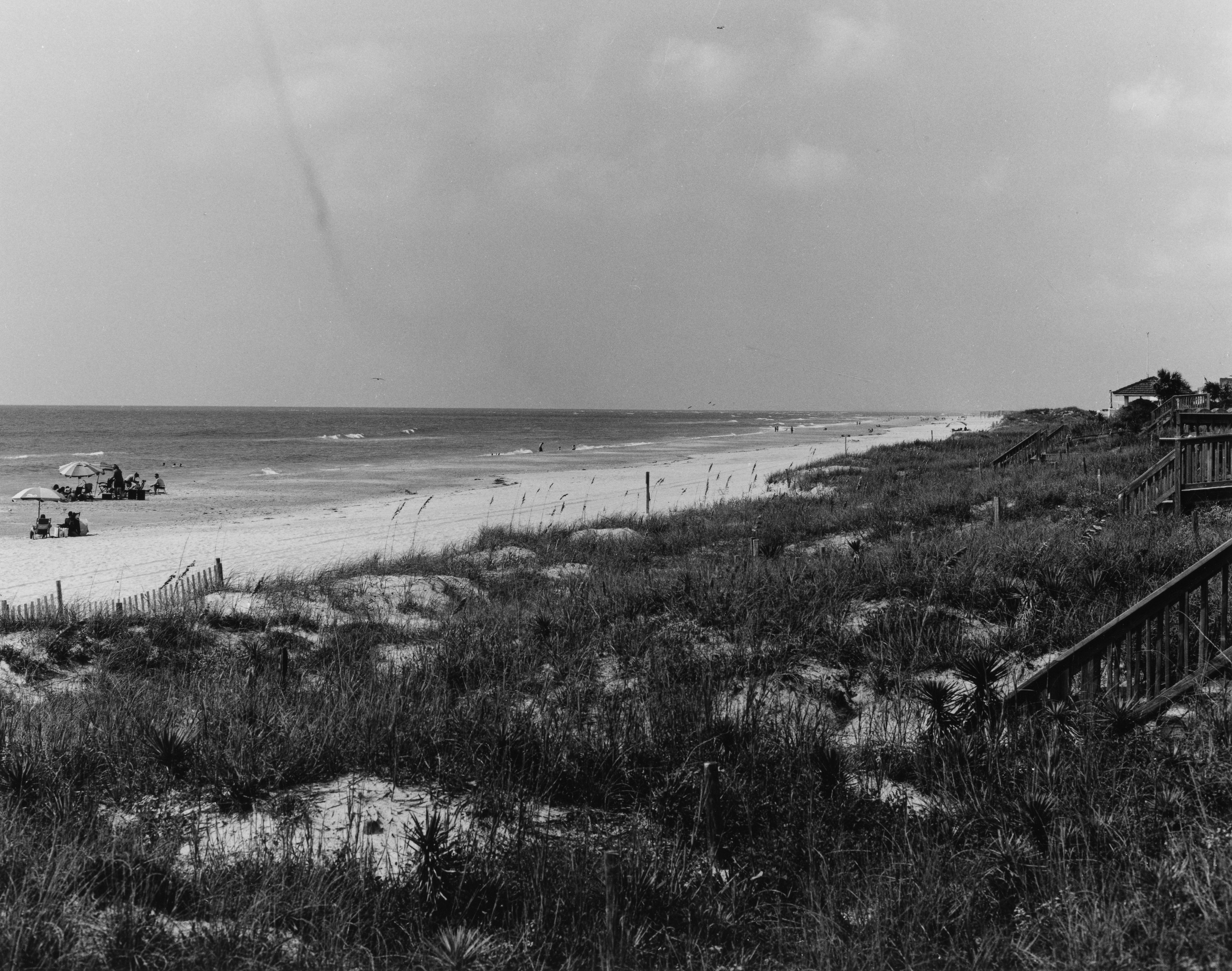 15809 scanEmerald Isle, North Carolina. The photo was taken in September of 2019 with a Pentax 67 medium format SLR equipped with a 105 mm f/2.4 SMC Pentax 67 lens on Ilford FP4+ film. The negative was enlarged optically with a Beseler 23CIIXL enlarger and a 100 mm f/5.6 Schneider Componon-S lens on Ilford Multigrade FB Classic Double Weight Fiber Base silver gelatin photo paper. Processing was done archivally using Kodak chemistry, with a final toning with Kodak Rapid Selenium Toner, treated with hypo clearing agent, and washed in an archival washer.
