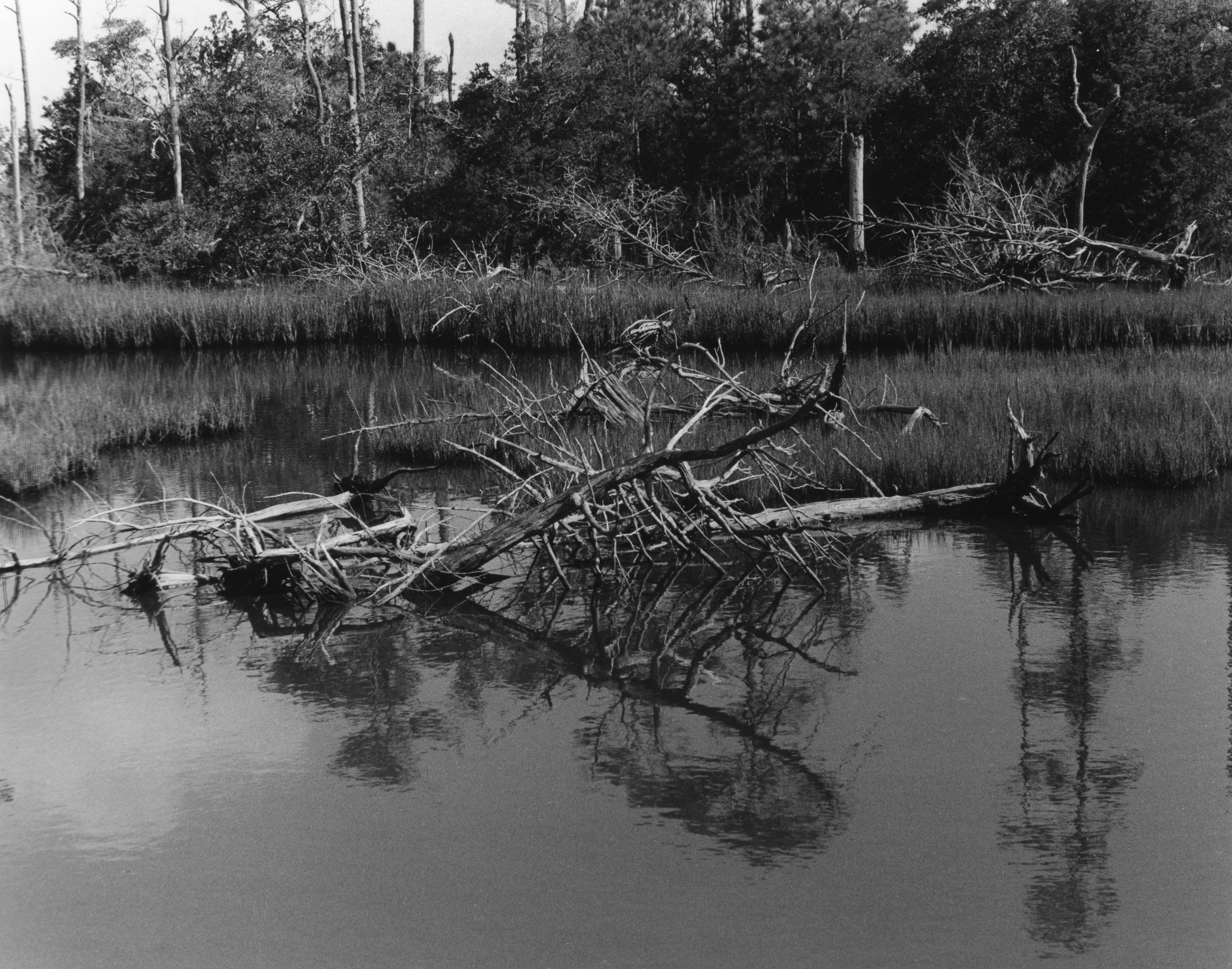 15935 scanOn the grounds of the North Carolina Aquarium, Pine Knoll Shores, Bogue Banks Island. The photo was taken in September of 2019 with a Minolta X-570 35 mm SLR equipped with a 50 mm f/1.7 Minolta MD lens on Ilford FP4+ film. The negative was enlarged optically with a Beseler 23CIIXL enlarger and a 50 mm f/2.8 Schneider Componon-S lens on Ilford Multigrade FB Classic Double Weight Fiber Base silver gelatin photo paper. Processing was done archivally using Kodak chemistry, with a final toning with Kodak Rapid Selenium Toner, treated with hypo clearing agent, and washed in an archival washer.