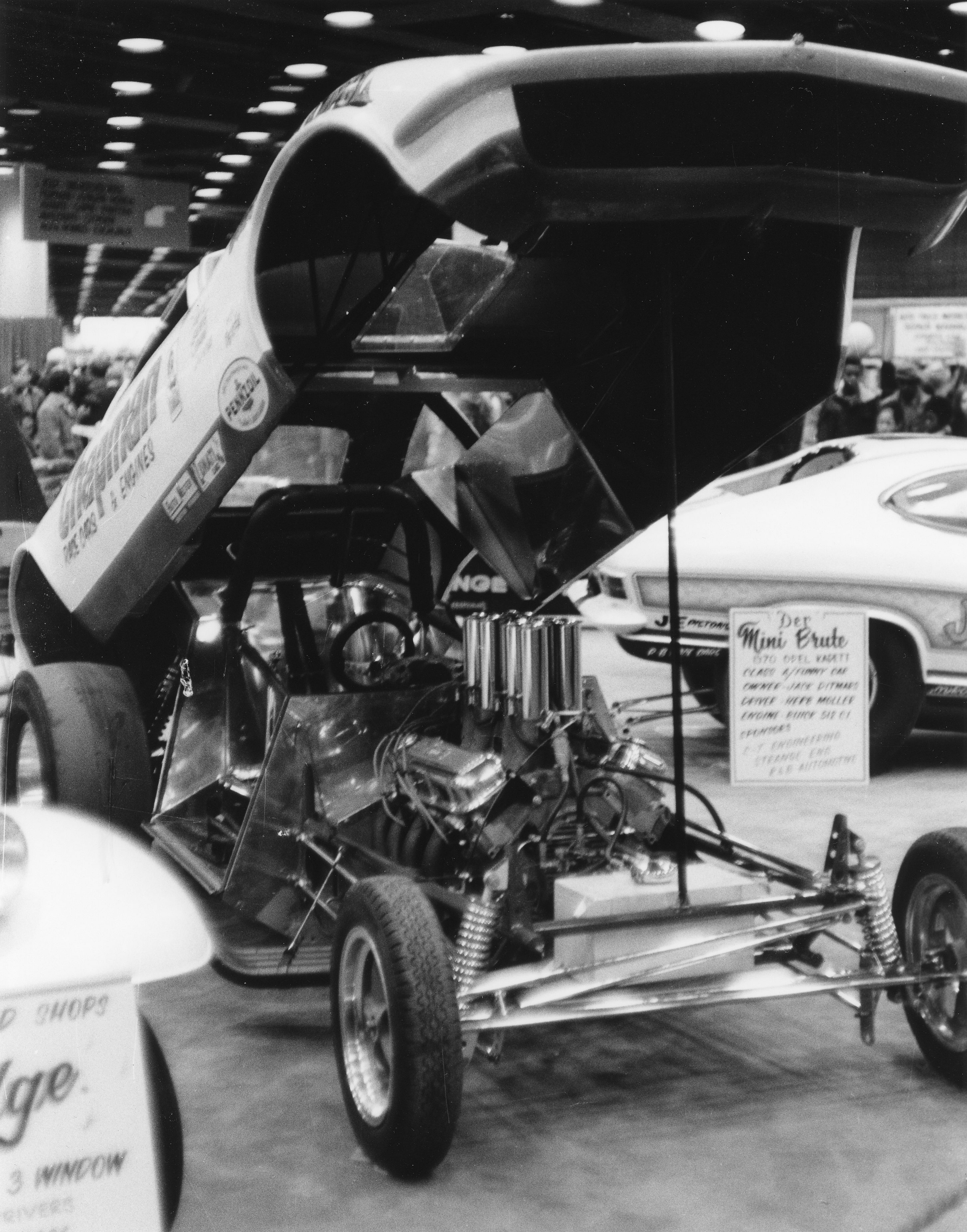 1BAS10 scanModels and models. 1972 Auto Show, Chicago, Illinois, USA. The photo was taken in February of 1972 with a Ricoh Singlex TLS 35 mm SLR equipped with a 55 mm f/1.7 Prinz Auto Rexatar lens on Kodak Tri-X Pan film. The negative was enlarged optically with a Beseler 23CIIXL enlarger and a 50 mm f/2.8 Schneider Componon-S lens on Ilford Multigrade FB Classic Double Weight Fiber Base silver gelatin photo paper. Processing was done archivally using Kodak chemistry, with a final toning with Kodak Rapid Selenium Toner, treated with hypo clearing agent, and washed in an archival washer.